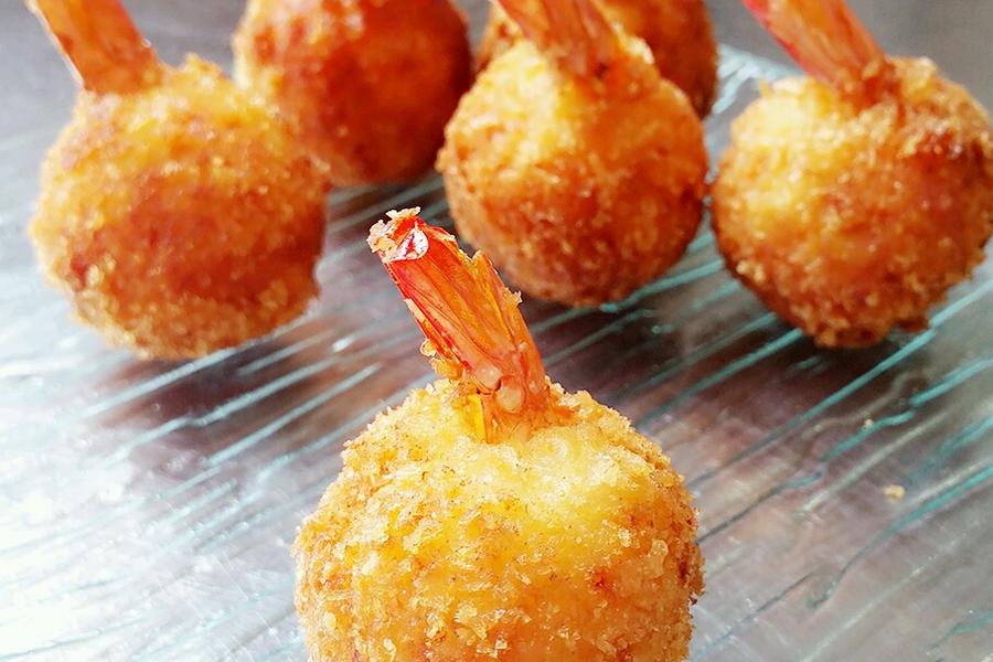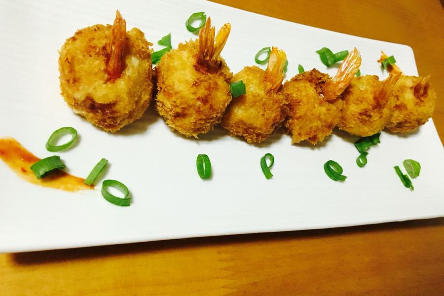 鸡蛋、土豆、面粉、大虾、盐、面包糠
