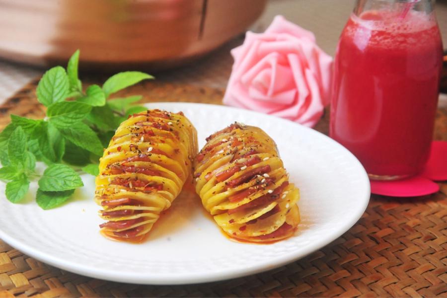 土豆、培根、番茄酱、沙拉酱、花生油、孜然粉