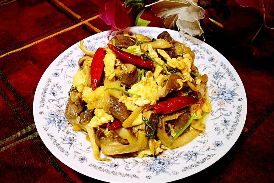 鸡蛋、香菜、蘑菇、干红辣椒、葱