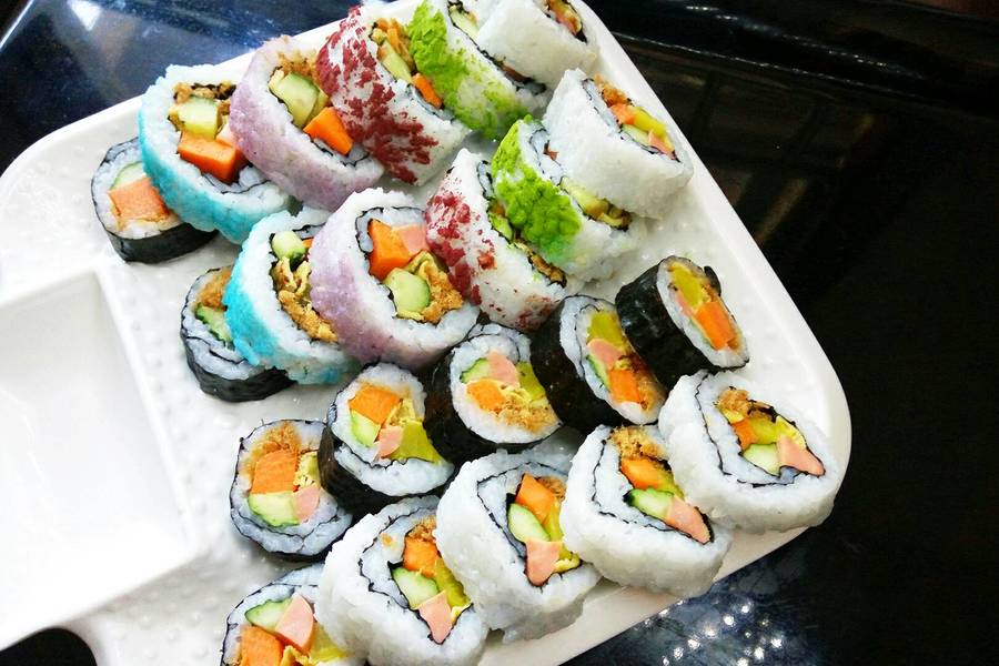 鸡蛋、黄瓜、香蕉、大米、糯米、火腿肠、紫菜卷