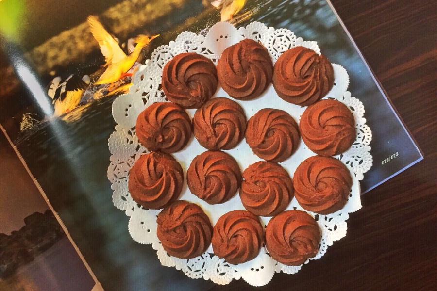 普通面粉、鸡蛋液、黄油、可可粉、白砂糖、糖粉