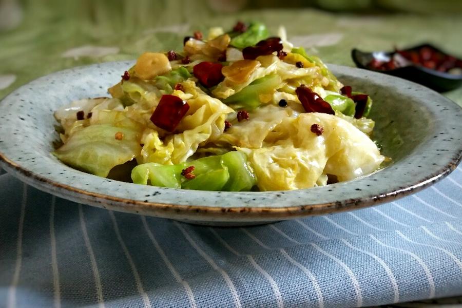 包菜、干红辣椒、葱、蒜、花椒、盐、酱油、鸡精、味精