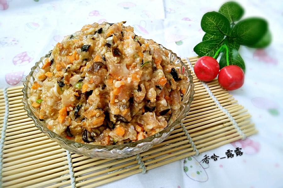 胡萝卜、新鲜香菇、猪肉(三肥七瘦)、姜、大葱、料酒、蚝油、盐、食用油、生抽、鸡精、香油、热水、面团材料:、馅料:、普通面粉或饺子粉
