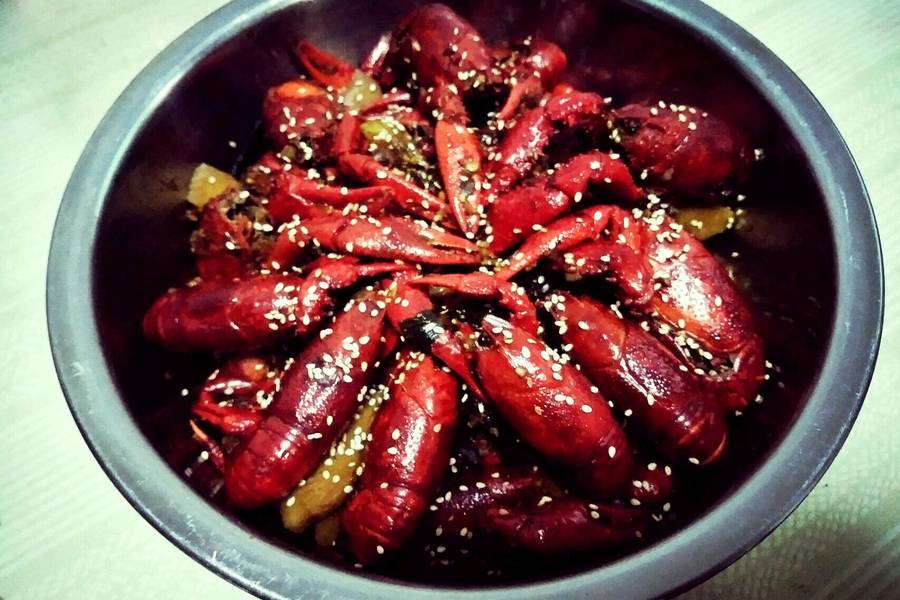 生姜、蒜头、干红辣椒、葱、大龙虾、八角、桂皮、熟芝麻