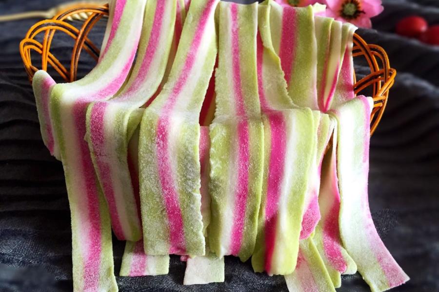 面粉、面粉、面粉、红苋菜、绿苋菜、盐、清水、清水、清水、白色面团用料:、红色面团用料:、绿色面团用料: