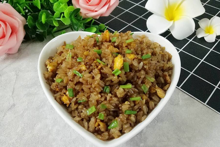 鸡蛋、香葱、剩米饭、蚝油、盐、糖、食用油、生抽、老抽