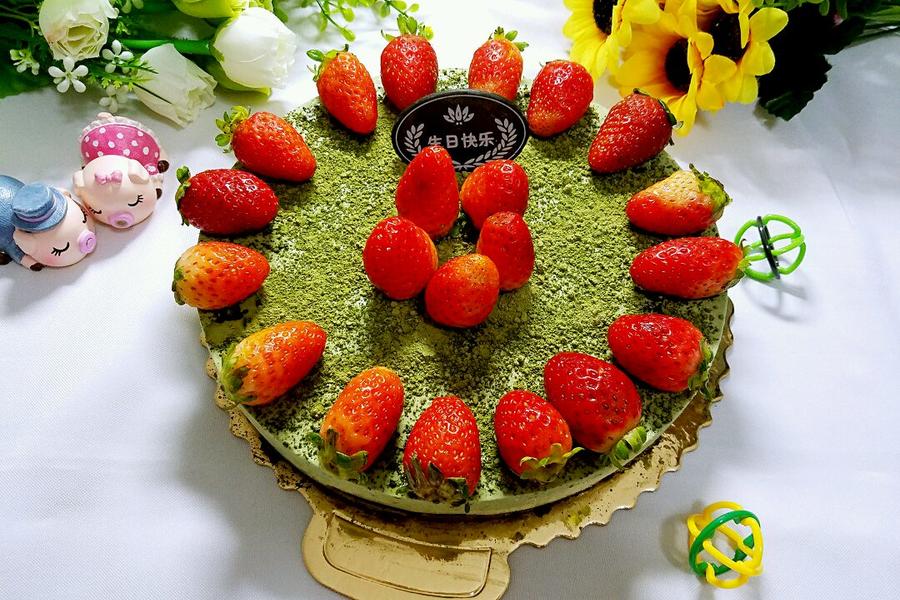 凉开水、吉利丁粉、宇治抹茶粉、防潮糖霜、糖粉、淡奶油、奶油奶酪、抹茶戚风蛋糕、抹茶粉(表面装饰)