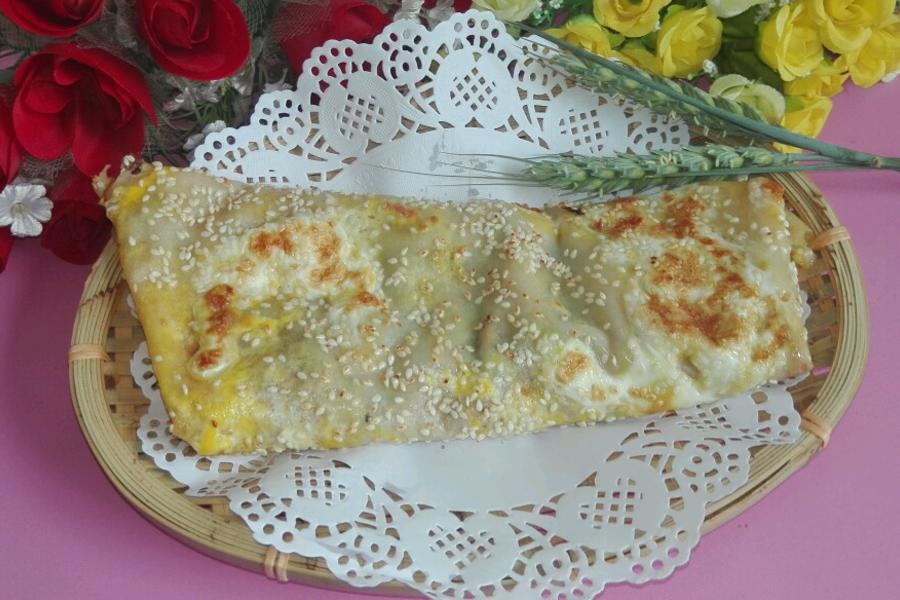 火腿、鸡蛋、生菜、芝麻、面粉、面粉、水、水、面皮、葱、脆皮、盐、五香粉、面酱(或者蒜蓉辣酱)