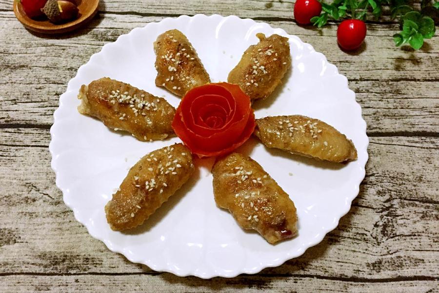 鸡翅、白芝麻、姜、蒜、料酒、孜然、孜然、腌肉料:、盐、生抽、油、鸡精