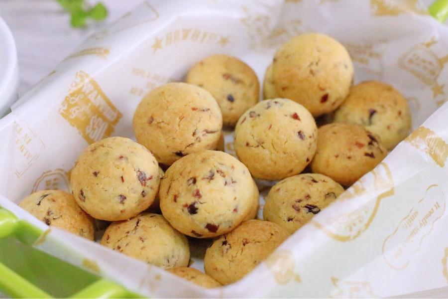 低筋面粉、蛋黄、蔓越莓干、黄油、盐、椰蓉、糖粉