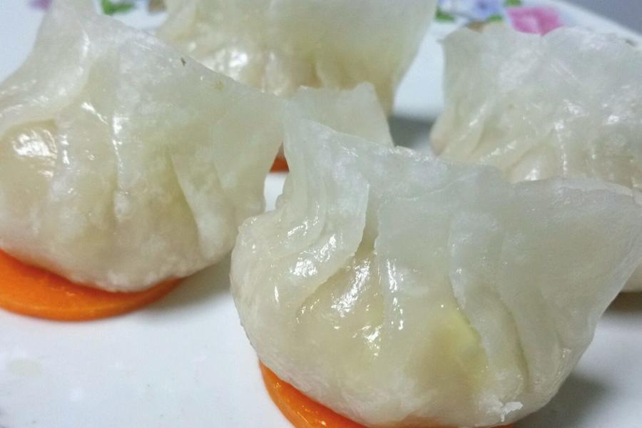 玉米淀粉、开水、盐、猪油、水晶皮:澄面