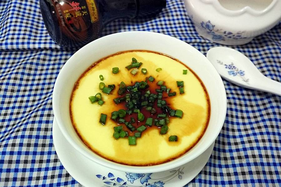 鸡蛋、温水、葱花、盐、油、李锦记天成一味特级鲜酱油
