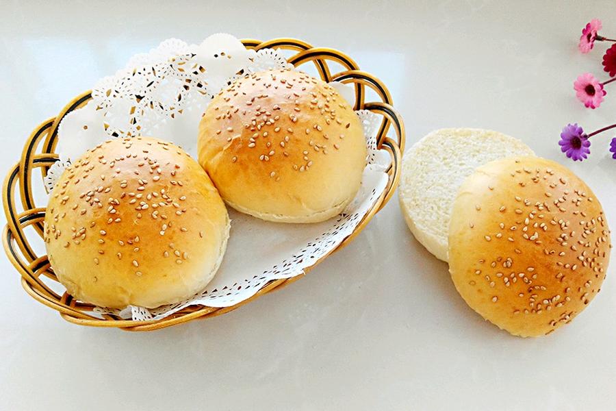 酵母、高筋面粉、低筋面粉、鸡蛋液、黄油、盐、糖、清水、蛋液(刷表面)、白芝麻(装饰表面)
