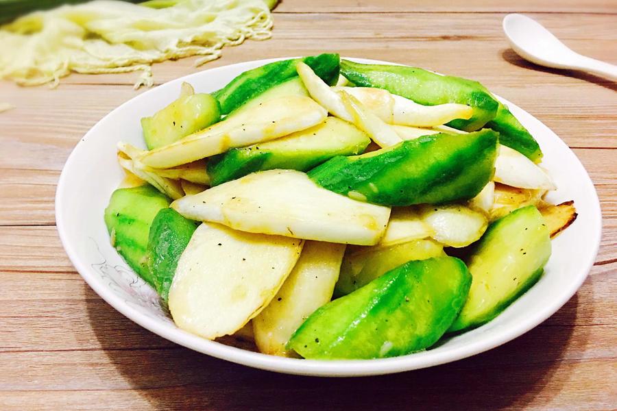 茭白、丝瓜、现磨黑胡椒、蚝油、盐、白糖