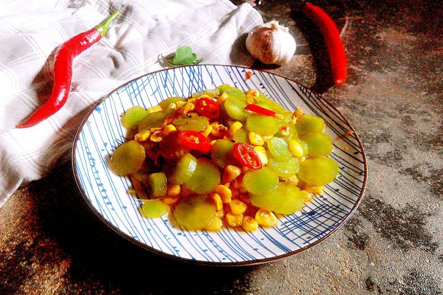 玉米粒、青笋、辣椒、蒜