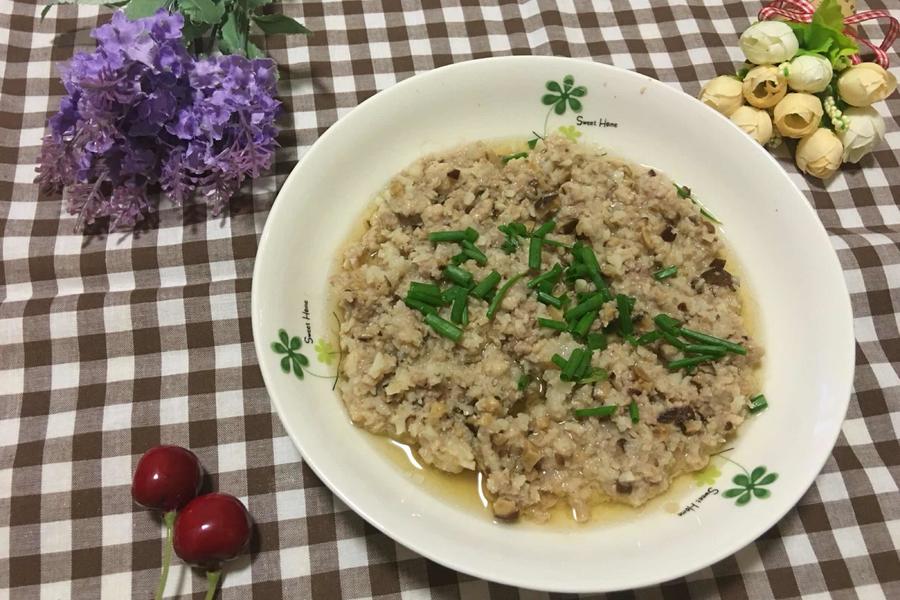 鸡蛋、虾米、香菇、猪肉碎、葱