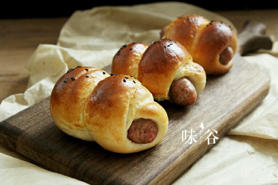 牛奶、高筋面粉、鸡蛋液、黄油、黑椒肠