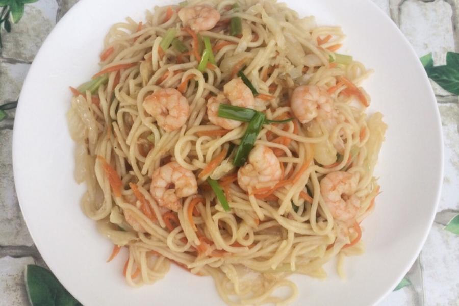 白菜、芹菜、胡萝卜、基围虾、生面、葱