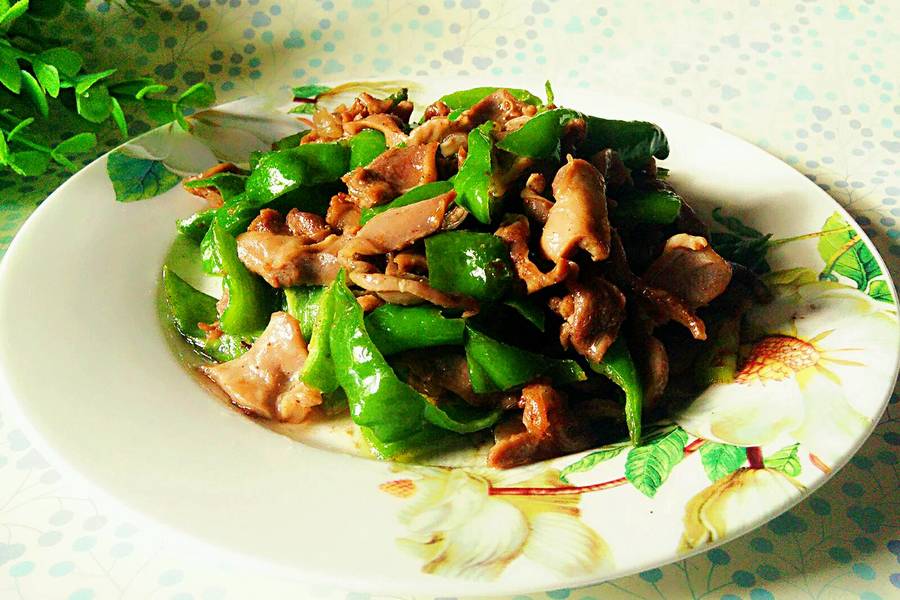 青椒、红椒、鸡胗、木耳、葱、姜、蒜、料酒、盐、油、鸡精、豆瓣酱、味极鲜