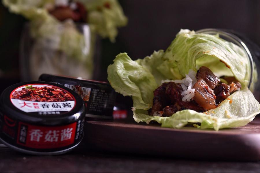 五花肉、米饭、盐、鸡精、胡椒粉、辣椒粉、孜然粉、辣椒油