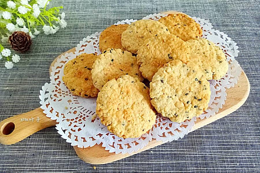 低筋面粉、奶粉、即食燕麦片、黄油、炼乳、熟黑芝麻