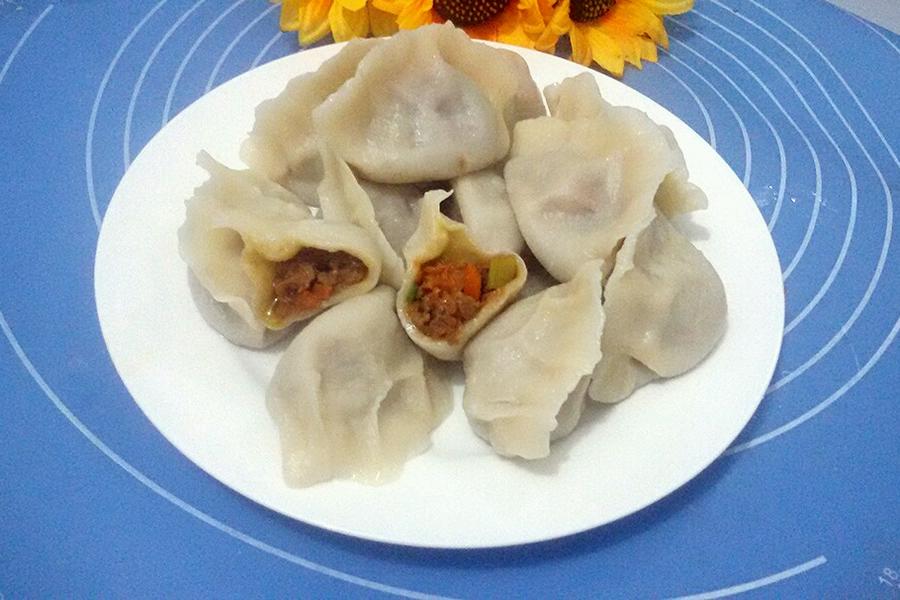 胡萝卜、面粉、水、葱末、姜末、羊肉馅、香菜末、盐、酱油、香油