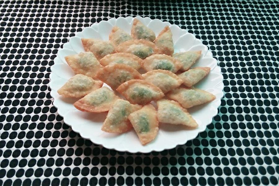 鸡蛋、韭菜、芝麻、面粉、料酒、盐、玉米油、生抽、鸡精、香油