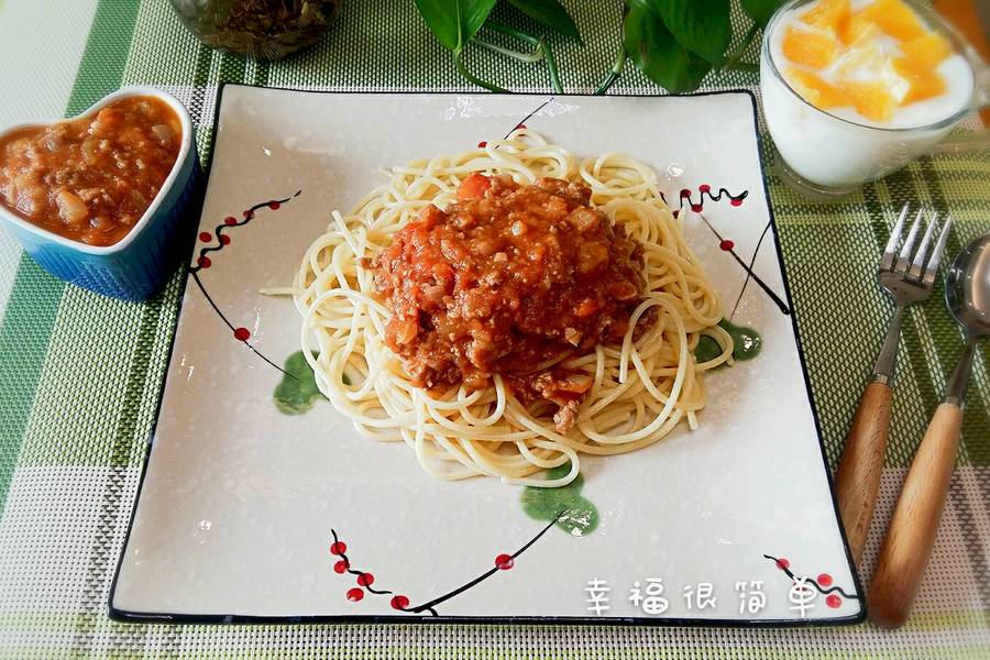 洋葱、番茄、意大利面、肉酱、番茄酱