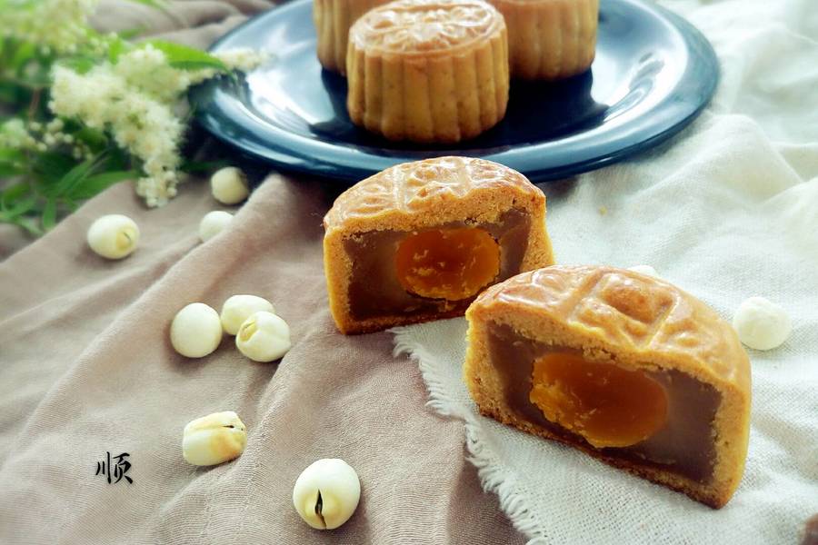 面粉、枧水、转化糖桨、食用油、蛋黄液、莲蓉蛋黄馅