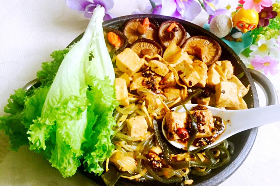 生菜、香菇、枸杞、豆腐、粉条、海带丝、豆腐皮