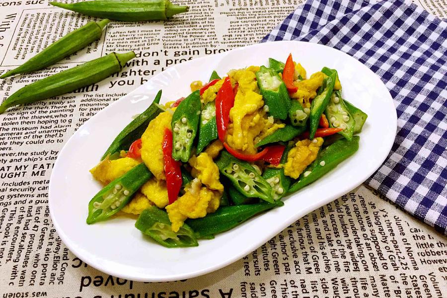鸡蛋、红椒、秋葵