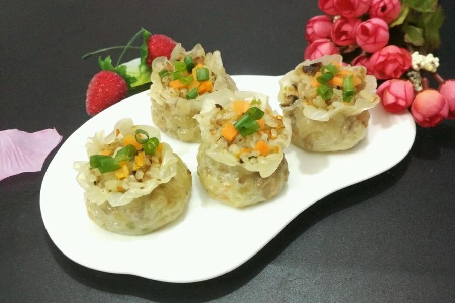 糯米、饺子皮、葱、红萝卜、干香菇、前腿猪肉、盐、油、酱油、耗油、鸡精、胡椒粉、姜