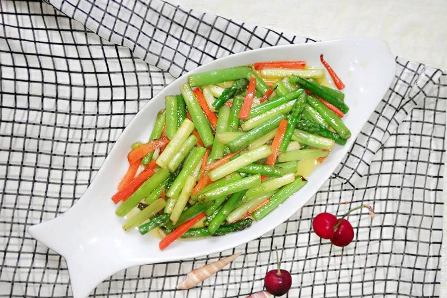 芦笋、葱、虾仁、蒜、料酒、盐、生抽、生粉、白糖、黑胡椒