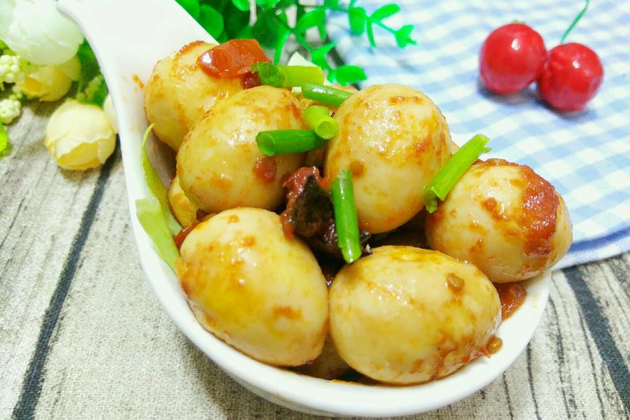 排骨、鹌鹑蛋、香葱、生姜、料酒、盐、大蒜、老抽、白糖