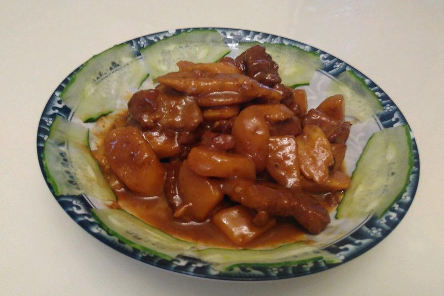 鸡腿、山药、辣椒壳、葱、姜、八角