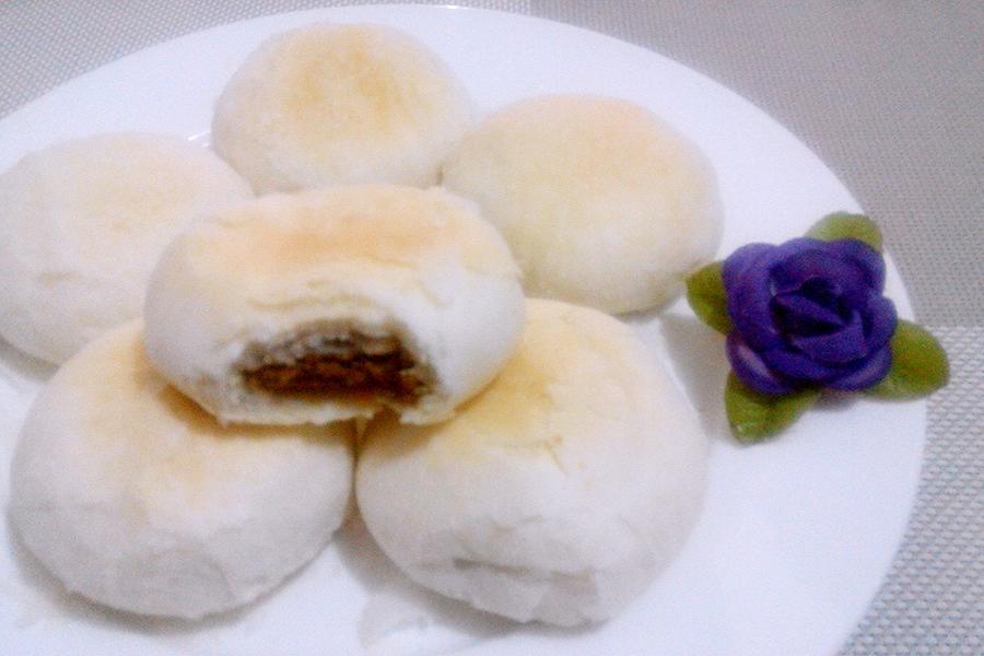 水、油皮:普通面粉、油酥:低筋面粉、猪油、猪油、绿豆沙馅、面糖