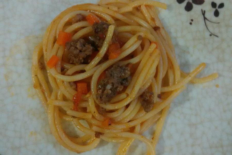 洋葱、胡萝卜、西芹、意大利面、碎肉、大蒜、番茄意面调味酱