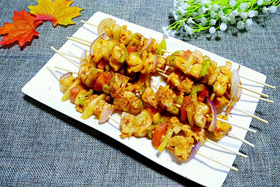 牛肉、青椒、红椒、黄椒、糖A、盐A、竹签、柠檬汁A、料酒a、玉米油A、烧烤酱A、现磨黑胡椒A、酱油A