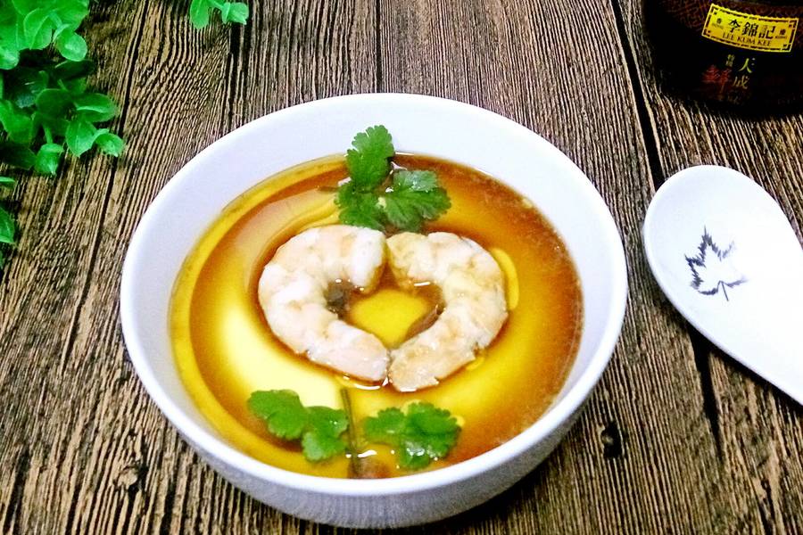 鸡蛋、温水、奶粉、虾仁、李锦记天成一味鲜