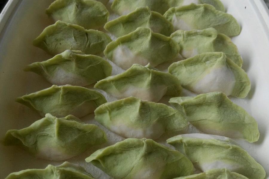 芹菜叶、饺子粉、羊肉馅、大白菜、盐、酱油、香油、葱,姜末