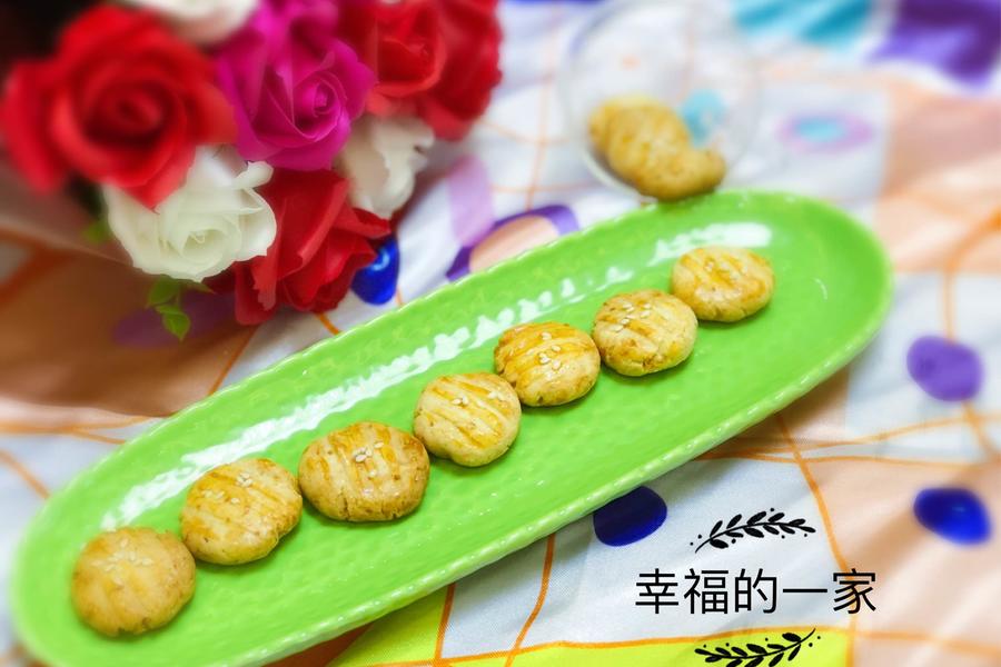 芝麻、低筋面粉、肉松、鸡蛋液、黄油、糖粉、鸡蛋液(刷表面)