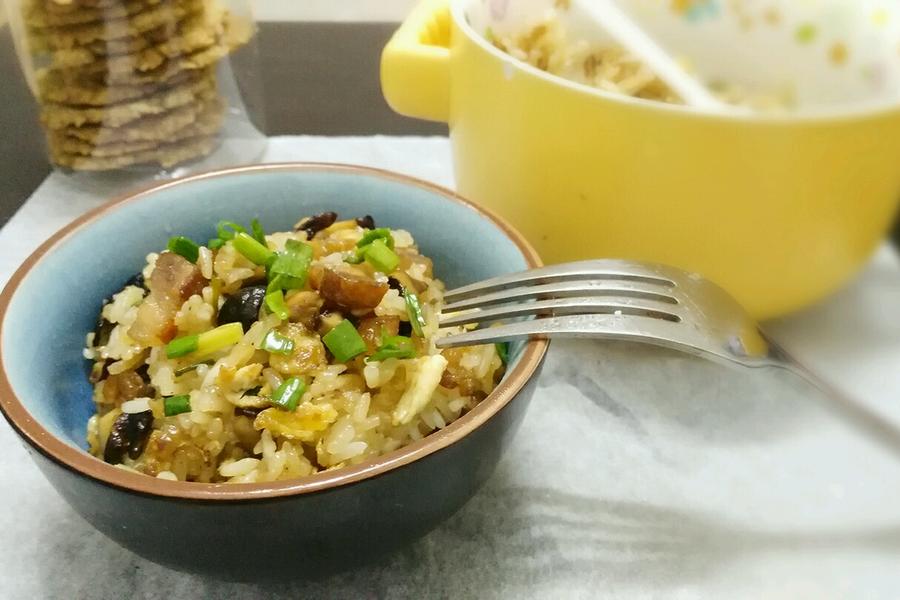花生、糯米、葱花、干香菇、腊肠、干虾仁