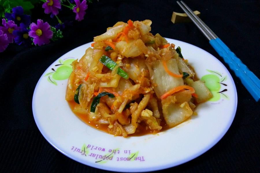 白菜、苹果、梨、糯米粉、姜、盐、大蒜、白糖、辣椒粉