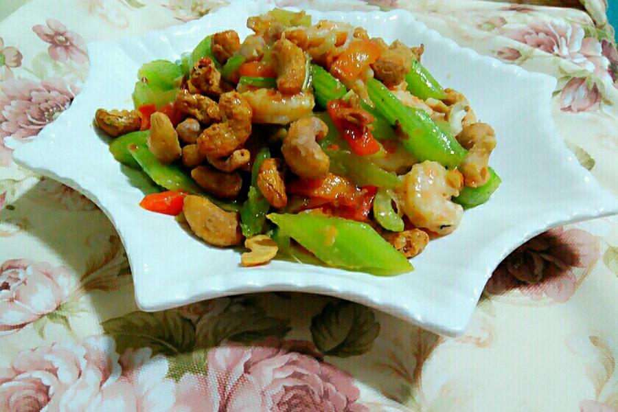 黄瓜、腰果、玉米淀粉、姜丝、基围虾