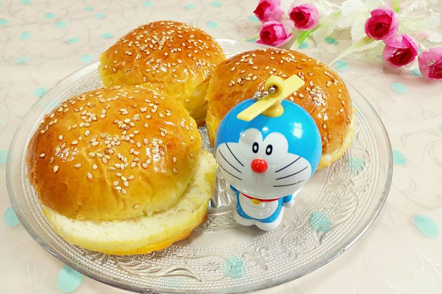牛奶、面粉、温水、酵母、熟白芝麻、黄油、盐、白砂糖、鸡蛋液(刷表面)、鸡蛋液(面团)