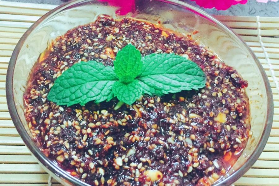 牛肉、芝麻、姜丝、熟花生、干辣椒、料酒、花椒、糖、酱油、鸡精、豆瓣酱、耗油、十三香