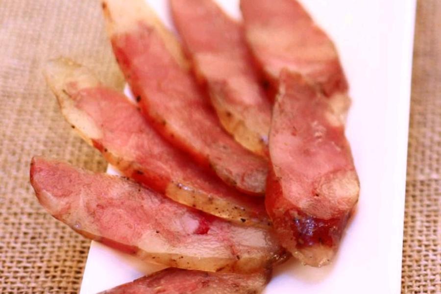 猪肉、盐渍肠衣、盐、鸡精、白糖、棉线、姜汁、生抽+老抽或生抽、宏仁堂五香面、二锅头高度白酒