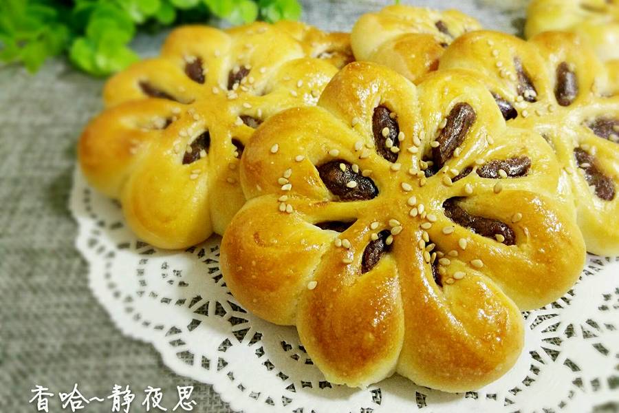 牛奶、酵母、高筋面粉、白芝麻、鸡蛋液、红豆沙、盐、玉米油