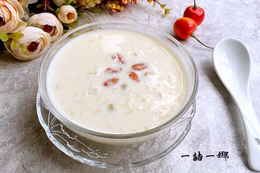 枸杞、低脂牛奶、去皮花生、冰糖、清水、银耳(泡发好的)