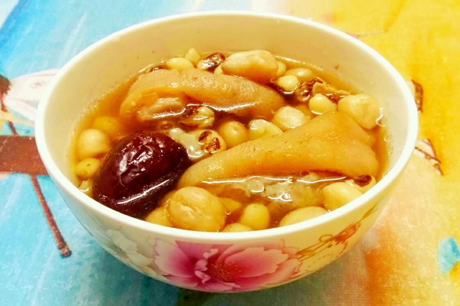 花生、猪脚、葱、姜、料酒、蚝油、八角、桂皮、生抽、胡椒粉、红烧酱油